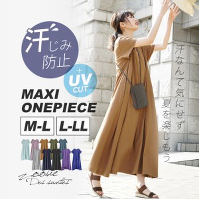 5 16 1 59まで特別送料無料 脇汗も背汗もシミないワンピース M L L Ll 汗染み防止 撥水 吸水 着心地さらさら Uvカットの ロング ワンピース レディース ロング 半袖 大きいサイズ 綿100 Zootie ズーティー イベント中 汗しみない マキシワンピース 代購幫