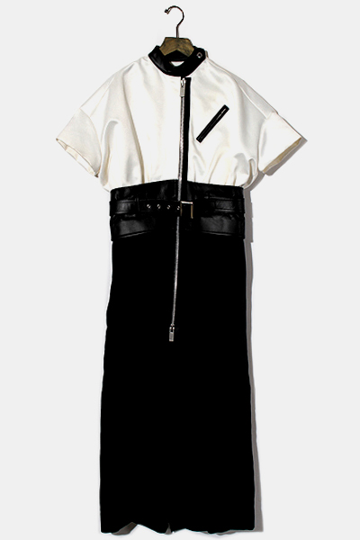 aw Sacai サカイ レザー切替 ドッキングワンピース マキシドレス 1 White Black ホワイト ブラック レディース 004 ベクトルパーク